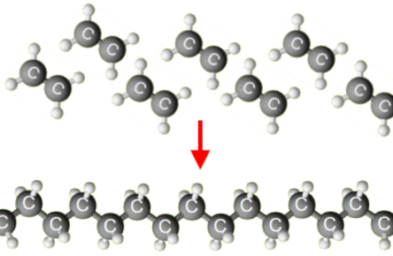 | Give an example. | When molecules of ethene join together to make poly(ethene) or polythene. |