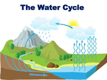 | What is the water cycle? | Water evaporates from lakes etc, and rises to the atmosphere. It then condenses or cools and becomes clouds. When there's too much water in the clouds it precipitates and rains. |