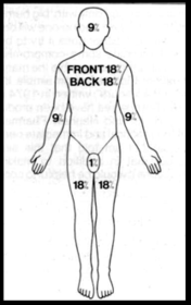 3618 Describe the use of the rule of nines in the assessment of a pt with burns. | |