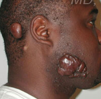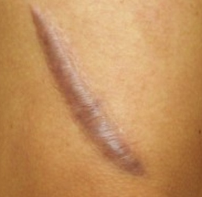 | Keloid scarring - grows beyond the boundary of the wound. | |