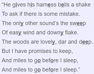 | Assonance = when two or more words close to one another repeat the same vowel sound but start with different consonant sounds | Example of assonance: |