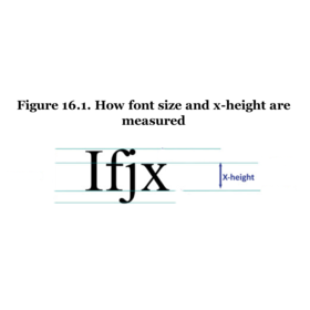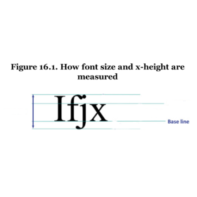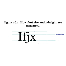 | The x-height is the distance between the baseline and the mean-line of the lowercase letters of the text. |