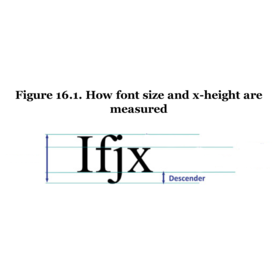 | Point size is the distance from the top of the tallest ascender to the bottom of the longest descender. | |