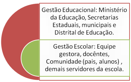 | Gestão da Educação (amplo) e Gestão Escolar (local) | |