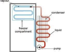 | Show a diagram which shows how a fridge removes heat from inside to the outside | |