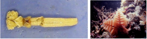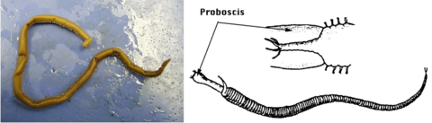 | Phylum: Annelida Class: Polychaeta Genus: Glycera proboscis, pink when alive | |