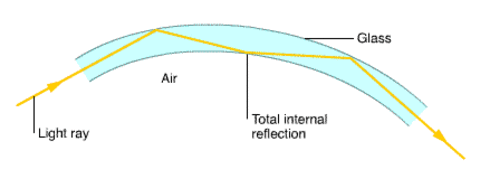 | Optical fibres are very thin glass fibres. We use them to transmit signals carried by VL or IR. The signals travel down the fibre by repeated total internal reflection | They're useful in communications because they carry much more information and are more secure than radio waves and microwaves |