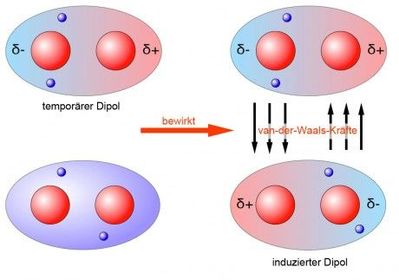 | Van Der Waal's attractions (vdW) (London inter-molecular Forces) There's a chance that electrons will be closer to one end of non-polar molecule than the other. What does this suggest? | The molecule momentarily becomes slightly negative on one end, and slightly positive at the other. |