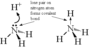 | Dative Covalent Bond atoms attracted to shared pair of electrons, provided entirely by one of the atoms | represented by an arrow. behaves just like a normal bond. often used with ammonia NH3 |