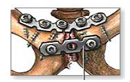 | A thin metal bar with perforations for the insertion of screws that is used to immobilize fractured bone segments. The plate is affixed with screws to properly align the bone and aid in the healing process. Plates are like internal splints that hold the broken pieces of bone together. They vary in length and may be curved or straight. Plates may be left in place after healing is complete, or they may be removed. Bone plates are named by the number of screw holes and by screw diameter size that fits the plate. | Bone Plates Laura Kaufman |