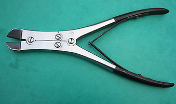 | Veterinary bone cutters are scissor-like metal surgical instruments used for cutting and removing bones. They are usually spring loaded so as to open back up on their own. They have paired, chisel-like tips and come in a variety of sizes for working with different sized bones. | Bone Cutters Noel Rideout |