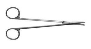 | Metzenbaum scissors are fine scissors used for cutting soft tissue and for blunt dissection. They come in curved and straight, with rounded tips and usually have plain blades. They can be anywhere from 5-11” long, but the most common length is 7 inches. These scissors should never be used to cut suture or bandaging material as it can dull or damage the blades. | Metzenbaum dissecting scissors (Jennifer Fujita) |