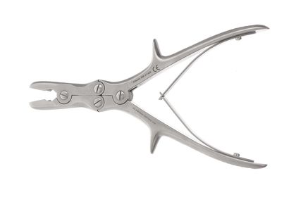| Double-action Rongeurs are used to cut and remove dense bone tissue. The working end is rounded at the tip with sharp and scooped jaws that are available in 3 varieties; straight(standard curved), slightly curved, and angular(also called duckbill). This instrument is double hinged which increases mechanical strength thus reducing hand fatigue and the amount of time it takes to cut through bone. The handles are plier style, spring loaded and come in two lengths, regular and extra-long. | Double-Action Rongeurs(orthopedic) Chris Schultz |
