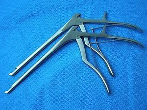 | Kerrison Rongeurs are very useful in spinal surgery They have sharp cupped tips that are used to cut small pieces of dense tissue (eg: bone, cartilage, fibrous tissue). Kerrison Rongeurs have a “gun shaped appearance”; a plier style, spring loaded handle attaches at roughly a ninety degree angle to the shaft of the working end. The tip has an upward square curve, like a square “C.” | Kerrison Rongeurs (Orthopedic) Aleiah Lasala |