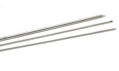 | Kirschner wires (aka”K- Wires”) are used to pin smaller bone fragments. They range from 0.035in, 0.045in, 0.062in in diameter and are similar to Steinmann’s Pins, but smaller. They are smooth and stainless steel. There are different types of tips: chiseled, trocar, or threaded trocar tip. Threads can be located in the middle as well; threads can have a positive or negative profile. K-wires are often inserted into the bone using a power drill or Jacobs hand chuck. | Kirschner wires (Orthopedic) Aleiah Lasala |