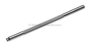 | Used for specialized ophthalmic surgical procedures, holds a special beaver blade, thin, lightweight, pencil shaped. A blade is attached to this instrument by turning the round end, this opens a slit into which the blade is positioned. Turning the end back into its closed position hold the blade in place. | Beaver Blade Handle (Ophthalmic) Maria Arenas |