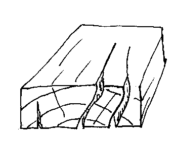 | Splits | Separation of timber fibres along the grain due to rate of drying, tension or from natural events such as lightning strikes. |