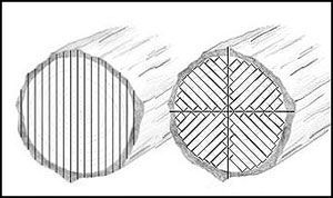 | Grain | The visual effect of the flow of tracheids. A wood is stronger when tension is placed across the grain rather than along it and it can support a greater load. |