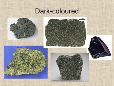 What does colour tell us about igneous rocks? | Colour is linked to the minerals the rock contains. Dark-coloured rocks usually have a high content of heavy minerals. While Light-coloured rocks contain high levels of silica-like minerals. |