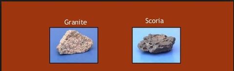 What's the similarities between scoria and pumice? | Pumice and Scoria are extrusive igneous rocks exploded out as volcanic bombs. These rocks are full of holes caused by gas bubbles. |