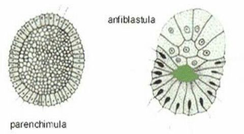 | Reprodução Sexuada | A maioria dos poríferos são monoicos (apresentam ambos os sexos). Os poríferos apresentam desenvolvimento indireto , ou seja, apresentam fase larval em seu ciclo de vida. Que podem ser Parenquímula ou Anfiblástulas dependendo da espécie |