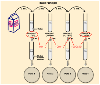 | LAB 12 What is the objective of the lab where we counted bacterial cultures in a milk sample? | 1. To appreciate the stringent guidelines used in the milk industry 2. To know the method commonly used in the milk industry to control the microbial growth in the milk. 3. To know the serial dilution methodology |