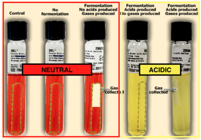 | LAB 15 Evaluate the carbohydrate fermentation test: | - No acids produced - Gas produced - Fermentation occured |