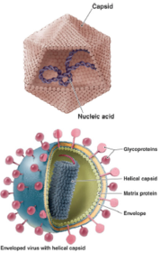 | LAB 19 Know the structure of a virus. | - Nucleic acid - Protein coat (capsid) - Envelope: The outer most layer that provide protection and recognition sites for host cells. |