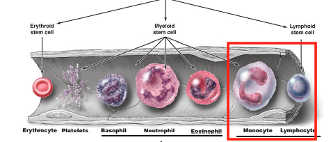 | LAB 20 Know which leukocytes are agranular and what their differentiating trait is. | Their granules cannot be seen with a compound light microscope. Monocytes and lymphocytes. |