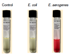 | LAB 17 How do you interpret the results of the Methyl Red test? | Methyl Red is the reagent used to test for the fermentation of glucose. E. Coli : Red = Glucose fermenter E. Aerogenes : Yellow = Non glucose fermenter |