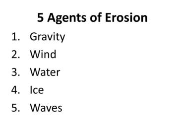 | What are agents of erosion? | Agents of erosion are the wind, ice and water that carry the small rock particles. |