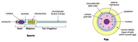 | Draw and label a diagram of a mature sperm and egg |