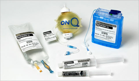 | Ropivacaine On-Q Pump Route & Dose | Via Catheters at wound site Dose Rate Variable: 1-7 mL/hr and 2-14 mL/ hr A portable device ON-Q pump continuously infuses the local anesthetic through 2 small catheters inserted at the wound site. |