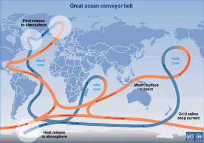 | State two types of ocean currents and some examples | Warm: Move water away from the equator. E.g => Gulf Stream Cold: Move water away from the cold regions towards the equator. E.g => Peru Current and Benguela Current (Southwest Africa) |