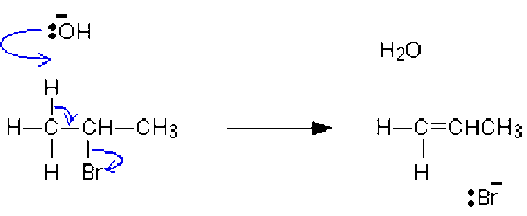 | Outline the mechanism that produces an alkene from a haloalkane |