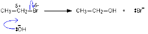 | Outline the mechanism which turns a haloalkane into an alcohol |