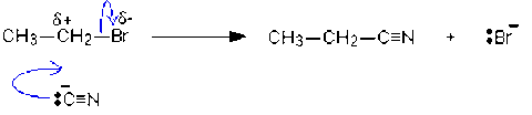 | Outline a mechanism which produces a nitrile from a haloalkane |
