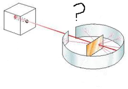 This shows the Rutherford Experiment. The research team fired alpha particles at gold foil, Whilst most travelled straight through (showing that the atom is mostly empty space), some were deflected and came off at an angle and a few even came out backwards. This made Rutherford realise that atoms must have a solid core, he called this the 'Nucleus'. |