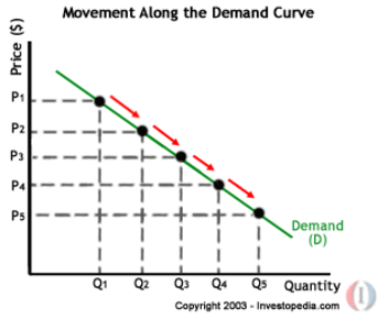 | Reasons for movement along the demand curve | 1. Change in price of the good 2. Income effect: When the price of the good falls, people will have more to spend (real income) 3. Substitution effect: when the price of the product falls, it will be relatively more attractive to people than other products whose prices have not changed. |