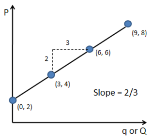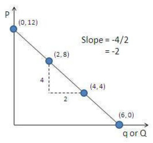| Slope of the demand curve as the slope of the demand function. (-b is the coefficient of P) | |
