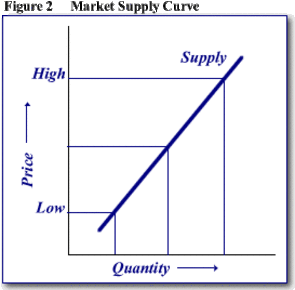 | The supply curve | The quantity of goods and services supplied increases as price increases. (upward facing curve) |