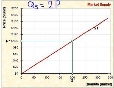 | The supply function(equation) | Qs= c + dP Qs: Quantity supplied c: Quantity supplied when price=0 d: Price elasticity of supply (gradient/slope) P: Price |