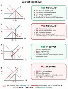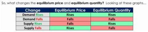 | Changes in equilibrium price and quantity following changes in demand and supply |