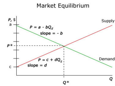 | Demand and supply equations forming equilibrium (point of intersection) | |