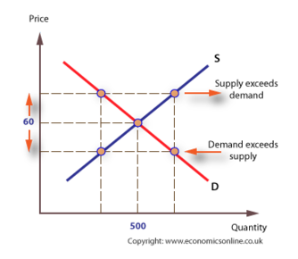 | Market equilibrium | The point when a good/ service are demanded and supplied for the same price. (The price and quantity is agreed upon by both the consumers and producers) |
