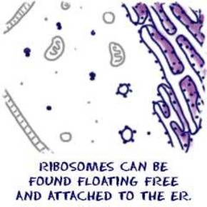RIBOSOME: Appearance: A small organelle that floats free or is attached to a rough endoplasmic reticulum. Function: This is the site where proteins are made. |