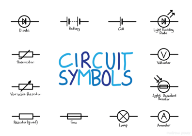 | Bulb - Glows when a circuit is complete Voltmeter - Measures the voltage produced by a power supply Ammeter - Measures the flow of electrons in a circuit, which is known as current Resistor - It slows down the flow of electrons in a circuit Variable resistor - It slows down the flow of electrons in a circuit. The resistance can be changed. | |