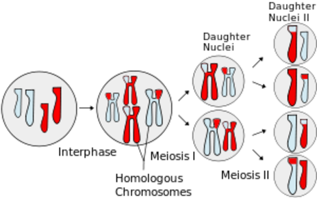 | What is the first stage of meiosis? | The cell duplicates its DNA- one arm of each chromosome is an exact copy |