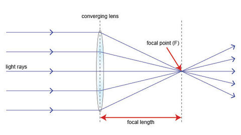 | What is the focal length? | the distance between the centre of a lens or curved mirror and its focus. |