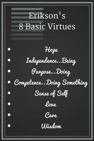 | VIRTUES | "In Erikson's theory, ego strengths that develop out of each psychosocial stage." (P. 140) |